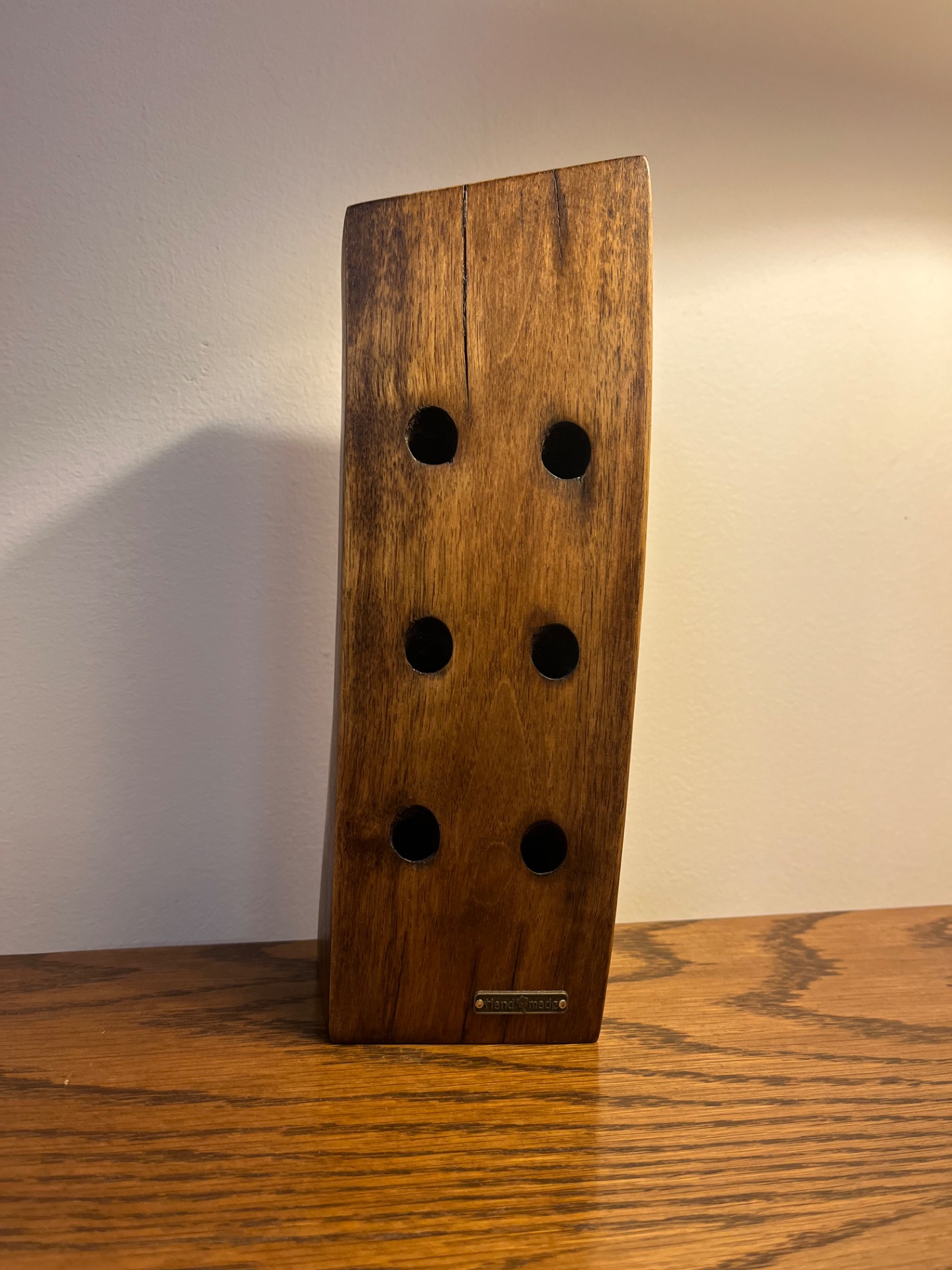 (latinsky "strážce") Ručně vytvořený objekt z masivního ořechu, který v sobě nese motiv ochrany a klidu. Kruhový otvor vytváří intimní prostor – místo ticha, pozornosti a vnitřní rovnováhy. Každý kus je originál, formovaný přirozenou kresbou dřeva a jeho jedinečným charakterem. Dřevo: ořech Rozměry: 27 × 16 cm